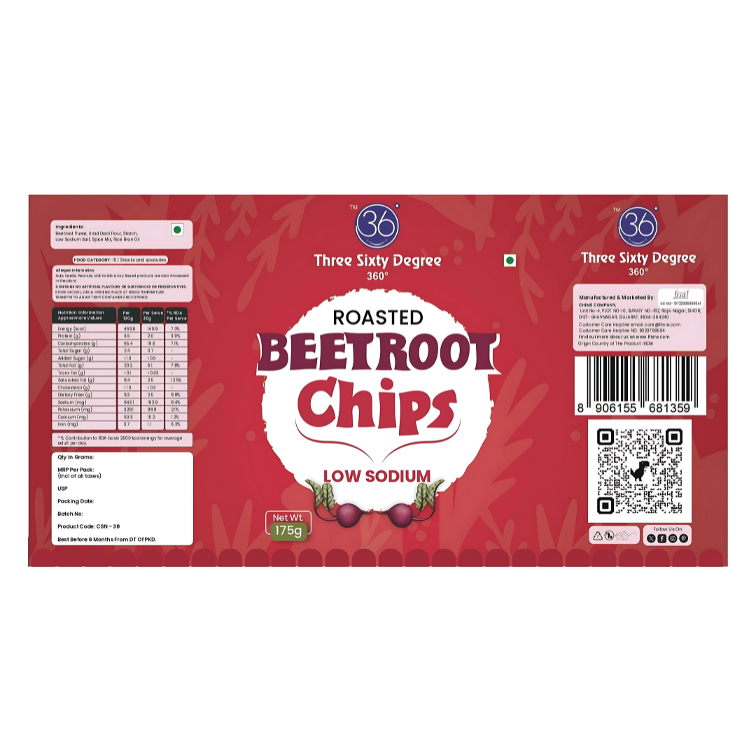 Crimson Crunch: Beetroot Chips in a JarUnveil the art of snacking with our Crunchy Beetroot Chips, delicately crafted and elegantly housed in a premium glass jar. Each chip is a celebration of nature’s vibrance—thinly sliced farm-fresh beetroot, slow-roasted to perfection for a crisp that’s as satisfying as it is nourishing.Infused with a hint of Low Sodium salt and a whisper of Rice bran oil, these ruby-hued crisps offer a guilt-free indulgence packed with antioxidants, fiber, and earthy flavor. The jar not only preserves their crunch but elevates your pantry with a touch of rustic luxury.Whether you’re curating a gourmet gift hamper or elevating your everyday snack ritual, 360 Degree Beetroot is a bold, beautiful bite into wellness.