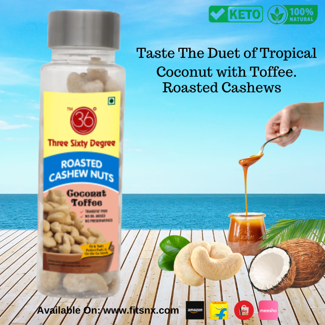Sweet island crunch, expertly roasted—Coconut Caramel Oven Roasted Cashews in a PET jar blend the tropical richness of coconut with buttery caramel bliss. Each cashew is slow-roasted to golden perfection, then coated in a luscious mix of creamy coconut and velvety caramel. Packed fresh for indulgence that feels exotic, comforting, and irresistibly gourmet