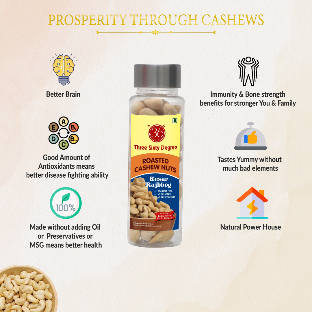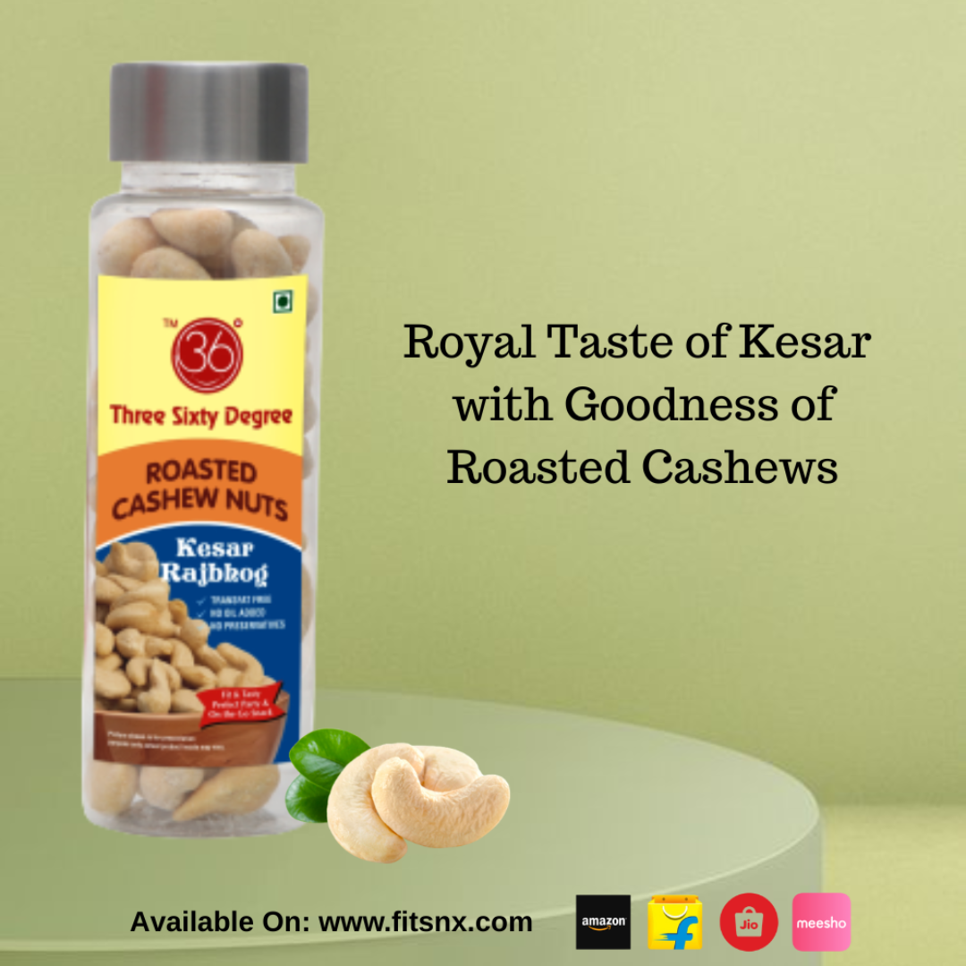 Royal flavor, roasted to perfection—Kesar Rajbhog Flavoured Oven Roasted Cashews in a PET jar deliver a luxurious taste experience inspired by classic Indian indulgence. Each cashew is slow-roasted for golden crunch and enveloped in rich saffron flavour with hints of creamy sweetness, evoking the regal charm of Rajbhog. Fresh-packed and festive, it’s tradition reimagined for your snack shelf.