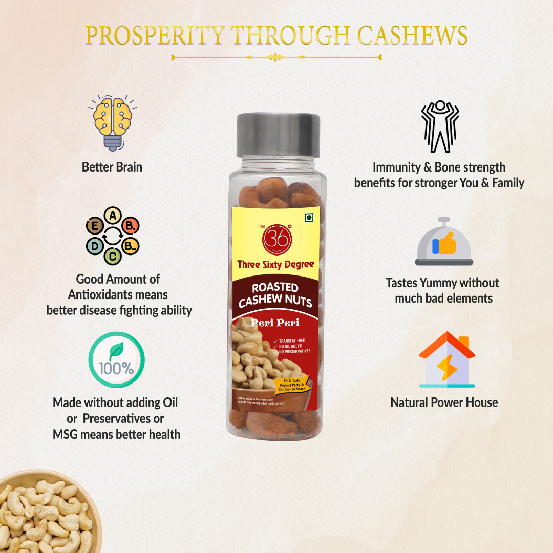 Bold flavor meets smart packaging—Oven Roasted Peri Peri Cashews in a small easy to carry tube deliver a spicy, gourmet snacking experience wherever you go. Each crunchy bite is infused with smoky, tangy peri peri seasoning and perfectly roasted to lock in freshness. Portable, resealable, and bursting with heat—these cashews bring the fire in every handful.